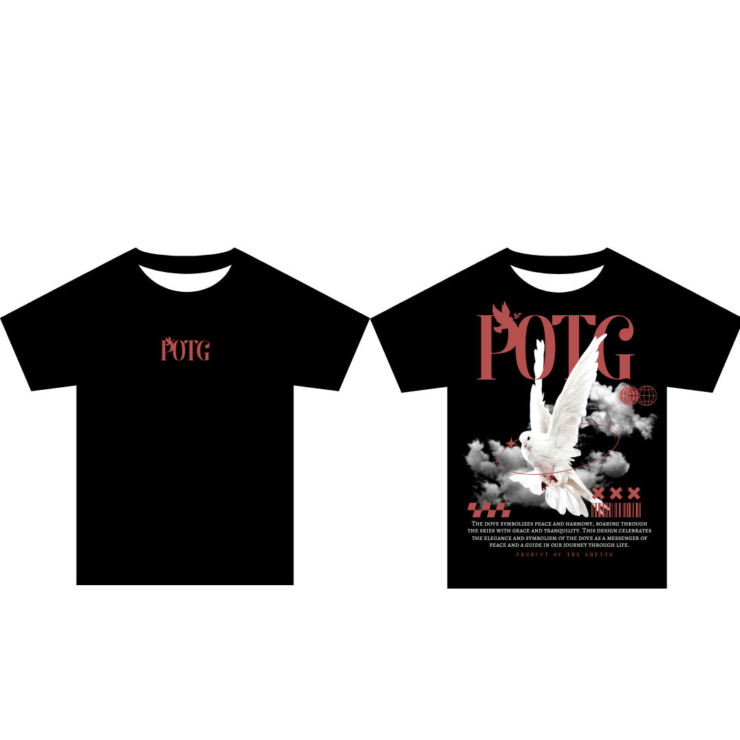 The "POTG Dove" collection is a meant to symbolize peace rising from the storm, this design blends elegance and power. Featuring a soaring dove beneath the bold POTG emblem, it represents guidance, hope, and inner calm — a visual reminder that even from the most chaotic places, beauty and purpose can emerge.